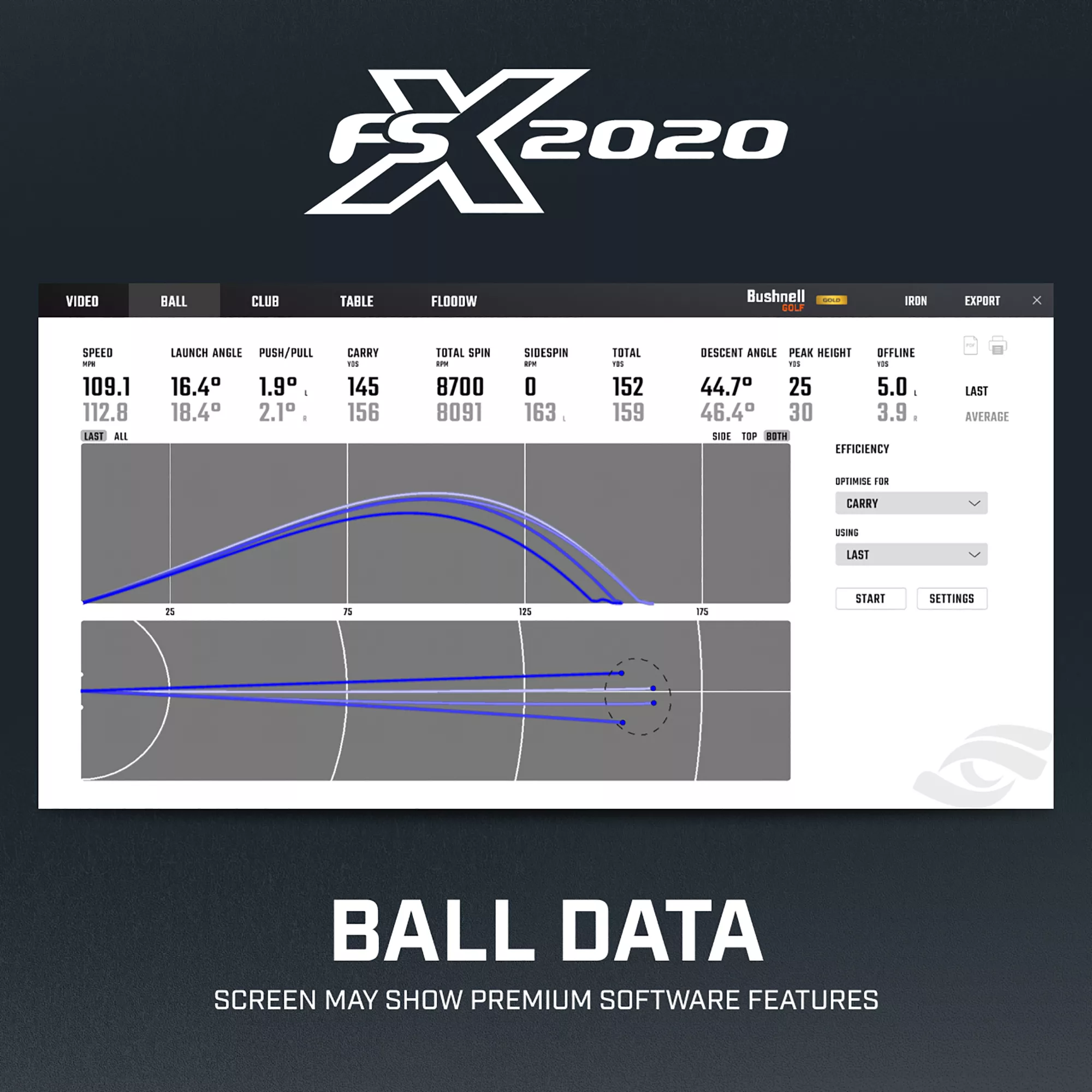 - Capture your club and ball data via a 3-high speed, high resolution camera-based system