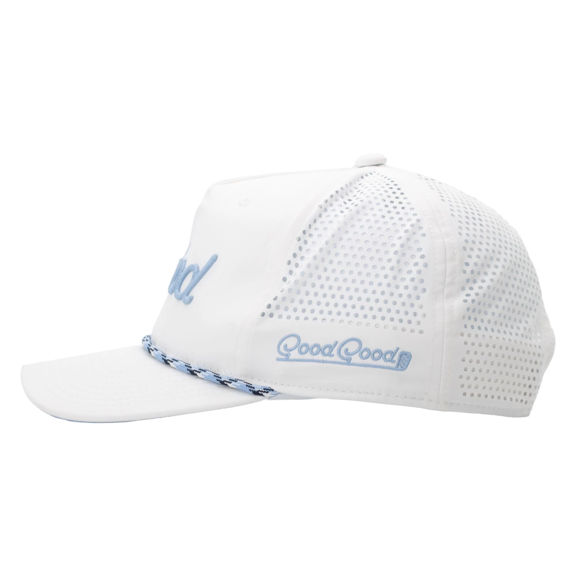 - Laser cut perforated back panels and interior mesh sweatband