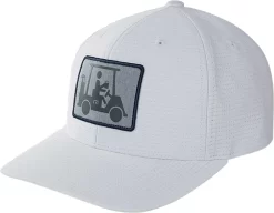 Pull up to the tee box in style wearing the TravisMathew Men’s El Capitan Golf Hat. Featuring a unique TM golf cart patch on the front panels, this hat will draw attention on and off the course. The adjustable snapback closure provides you with a customized fit and the mesh back panels provide enhanced comfort and breathability.